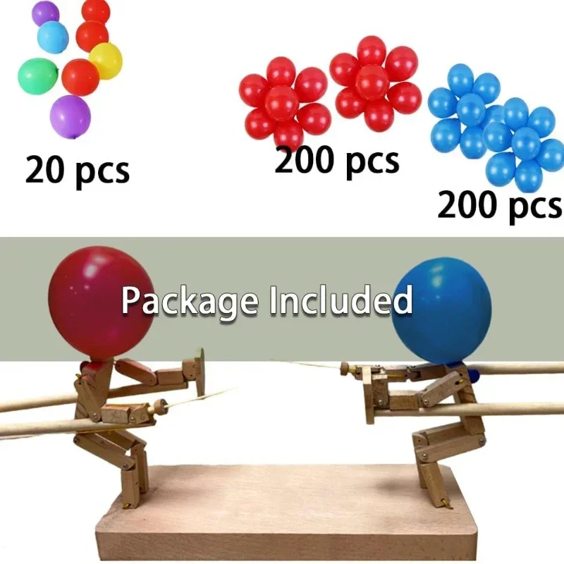 Balloon Bamboo Man Battle,Wooden Fighter with Inflatable Head,Fast-Paced Balloon Fight,Wooden Bots Battle Game for 2 Players,Adult Party Games for Groups,Balloon Game with 120pcs Balloon